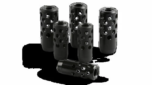 Schultz & Larsen Rekylbrems Small 8MM 14×1,5Schultz & Larsen er en munningsbrems er for de som ønsker å redusere rekyl effektivt. Det er opprettet en elegant design og er en praktisk og elegant løsning.Schultz & Larsen munningsbrems er designet for å være så enkelt som mulig, samtidig som det gir en god rekyl redusering. Produksjon av stål og utformet symmetrisk for å redusere variasjoner i treffpunktet. Den er uthulet i kjernen for å minimere vekten, og for å unngå at riflen er “nese-tung”.Gasshullene i munningsbremsene er vinklet 11 grader frem, slik at du som skytter er skjermet for munningen. Og nettopp den symmetriske plassering av gass hull sikrer at skudd presisjonen er den samme eller enda bedre. Dette alene fordi rekyl er en av de største faktorene når du gjør presisjonsskyting. Merk: Det anbefales å bruke hørselvern. Også for å vise respekt for skyttere som ligger ved siden av, i lyden rettet på denne måten av skudd oppgjør.